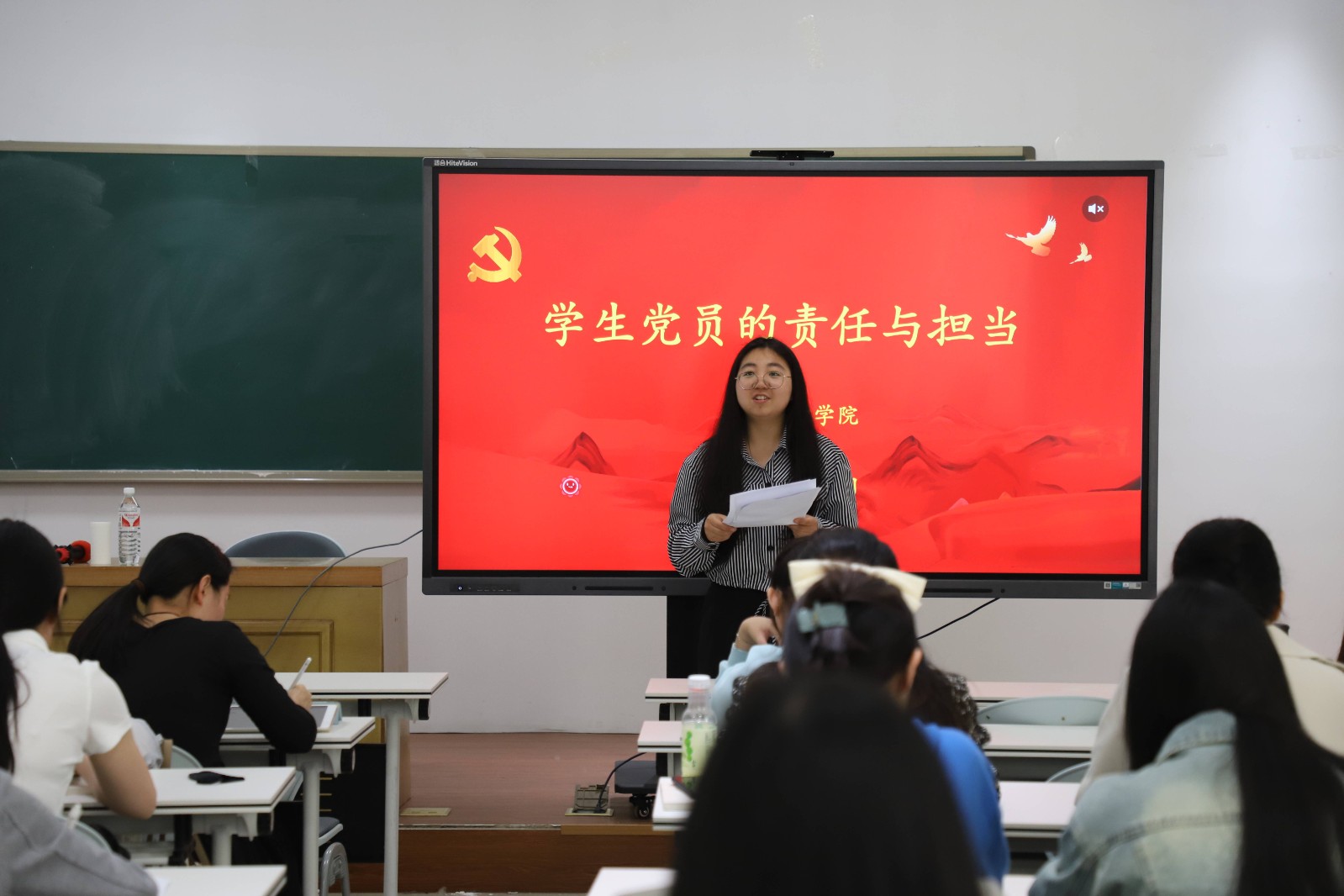 各学生党支部书记分别以《中国共产党章程》、《中国共产党发展党员工作细则》、《学习解读党的二十大精神》、《形势与政策》、《党史学习教育,习近平文化思想》为题,带领同学们深入了解党的宗旨和指导思想,增强党性修养,引导同学们坚定不移听党话、跟党走,肩负民族复兴重任,未来让青春之花绽放在祖国最需要的地方。