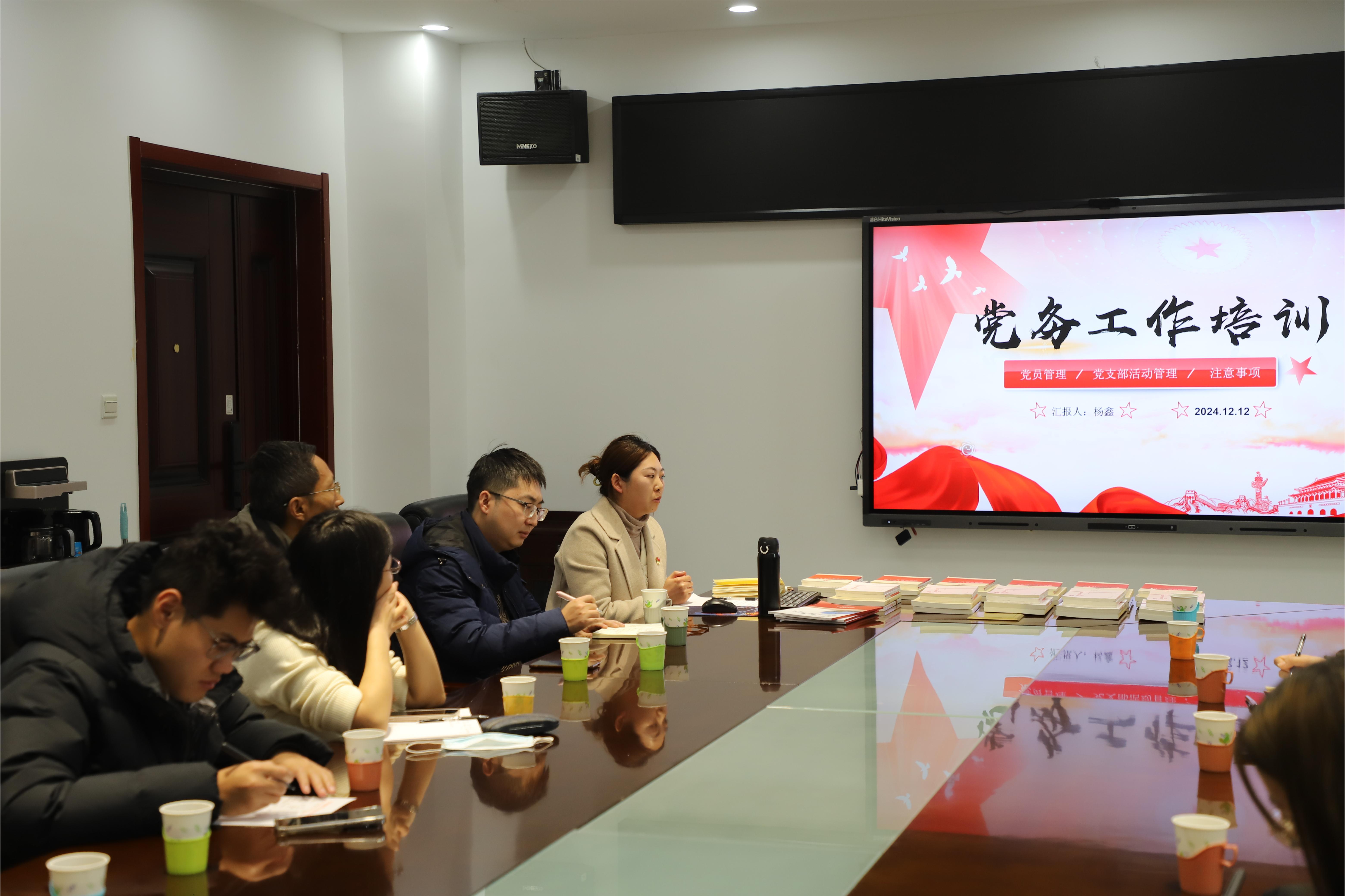 会议第二部分,由党委秘书杨鑫对党建平台的使用与维护进行专项培训。她结合支部具体工作和上级相关要求,详细介绍了党建平台的各项功能、操作流程和重要注意事项,指导各支部更加规范地开展活动,提升党建工作的质量与效率。