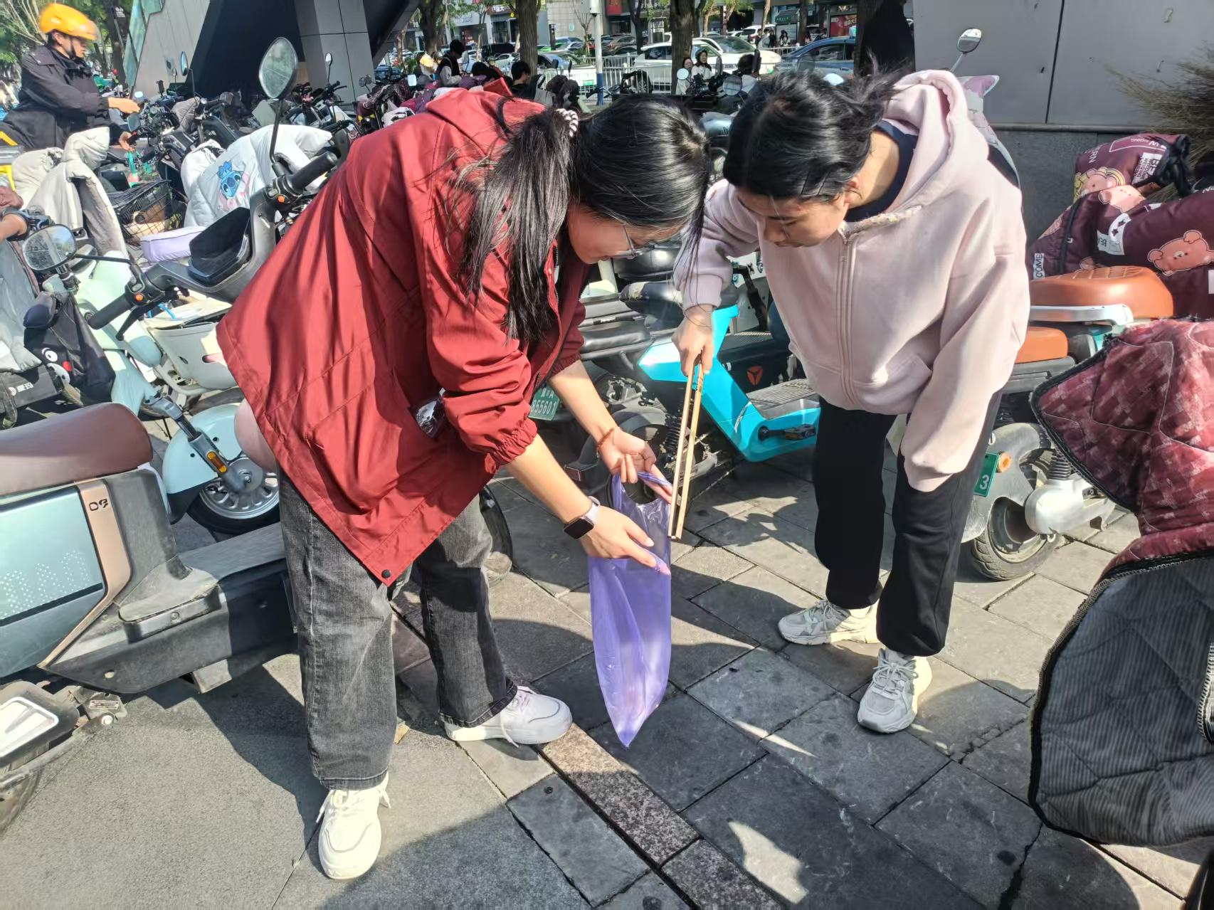 活动当天,志愿者们来到南三条步行街,分组有序开展垃圾清理工作。大家手持垃圾袋、垃圾夹等工具,认真清理道路、草坪中的烟头、纸屑、包装袋等垃圾。过程中,同学们不怕脏、不怕累,专注细致,不放过任何一个卫生死角。部分志愿者主动整理路旁的单车,将倒了的单车扶起,既美化了环境,也方便了市民,让市民们看到了当代大学生的精神风貌和综合素质,营造了一个和谐互助的社会氛围。