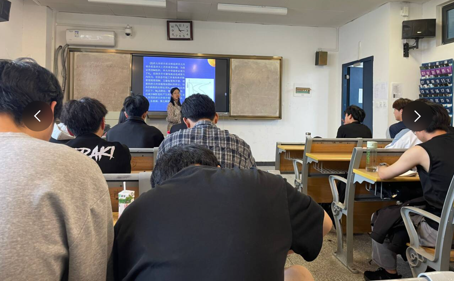 2025年4月21日下午,崔霞老师在南教517开展题为“钢的退火与正火”的公开示范课。课程从企业实际生产案例出发,围绕钢种类型介绍相宜的退火、正火工艺,内容深入浅出。通过动画演示与真实加工视频,引导学生分析讨论不同工艺适用场合并针对性点评,有效提升学生运用知识解决实际问题的能力。