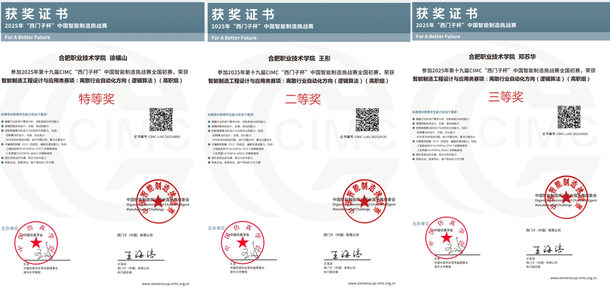 近日,2025年第十九届“西门子杯”中国智能制造挑战赛华东三赛区暨全国初赛比赛顺利举行。WilliamHill官网WilliamHill中文官方网站徐福山、陈化伟等6位同学获得离散行业自动化(逻辑算法)赛项全国初赛特等奖、二等奖、三等奖各一项。