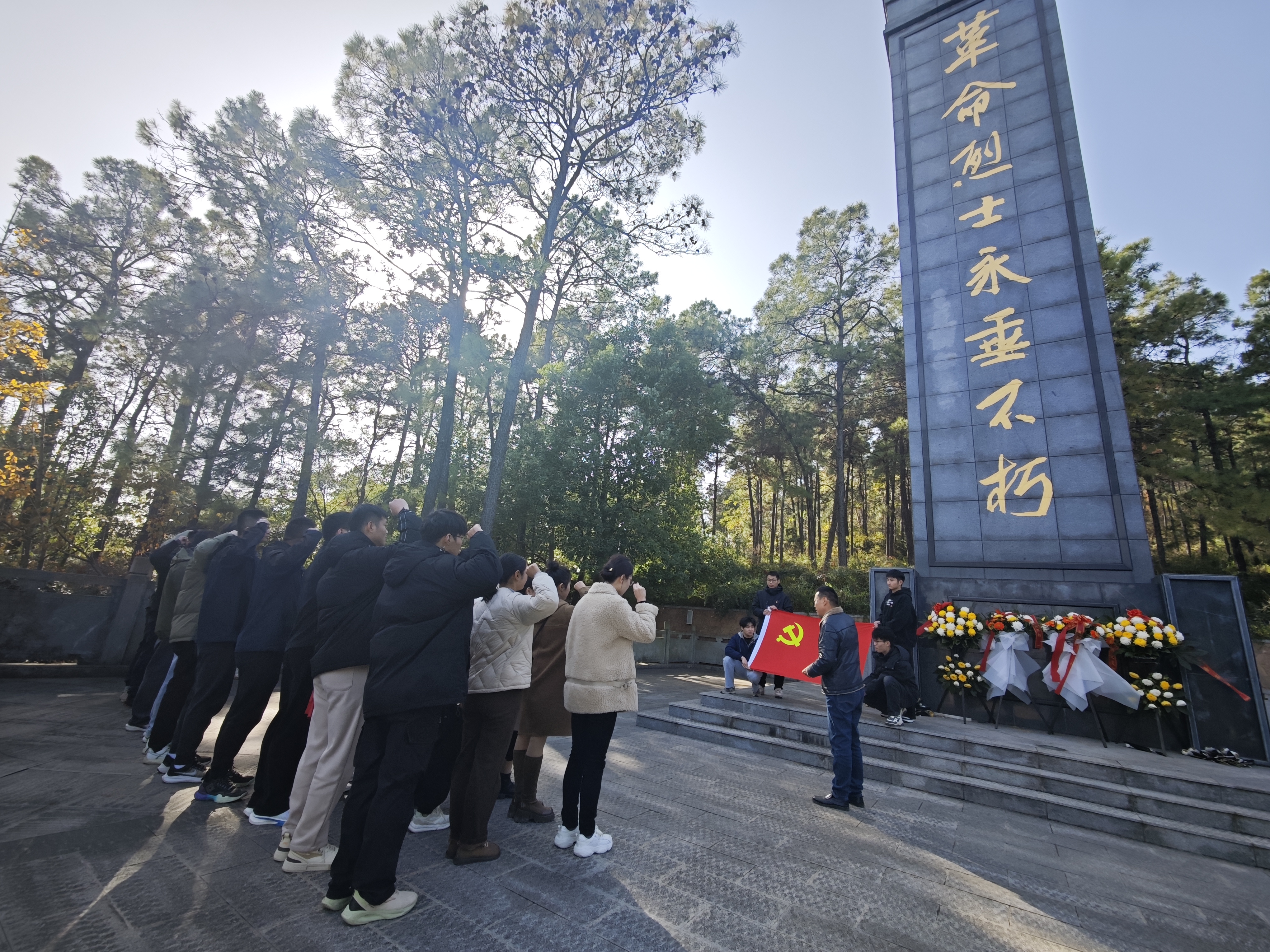 拾级而上,党员们仔细阅读每一位烈士墓碑上镌刻的生平事迹,为英烈们不怕牺牲、敢于奋斗的革命精神所深深打动,师生们自发擦拭烈士墓碑。随后,该院党总支副书记(主持工作)丁迎春带领全体党员集体默哀并重温入党誓词。参加活动的学生党员与教师党员开展了讨论交流,其中退役复学的两名学生党员向老师们介绍了在部队服役时的亲身经历和深切体会。老师们叮嘱道,今天的幸福生活来之不易,青年学生应当热爱学习、感恩时代,树立技能报国之志,勇担强国使命。通过本次活动,全体党员增强了历史使命感和责任感,明确了党员权利义务。