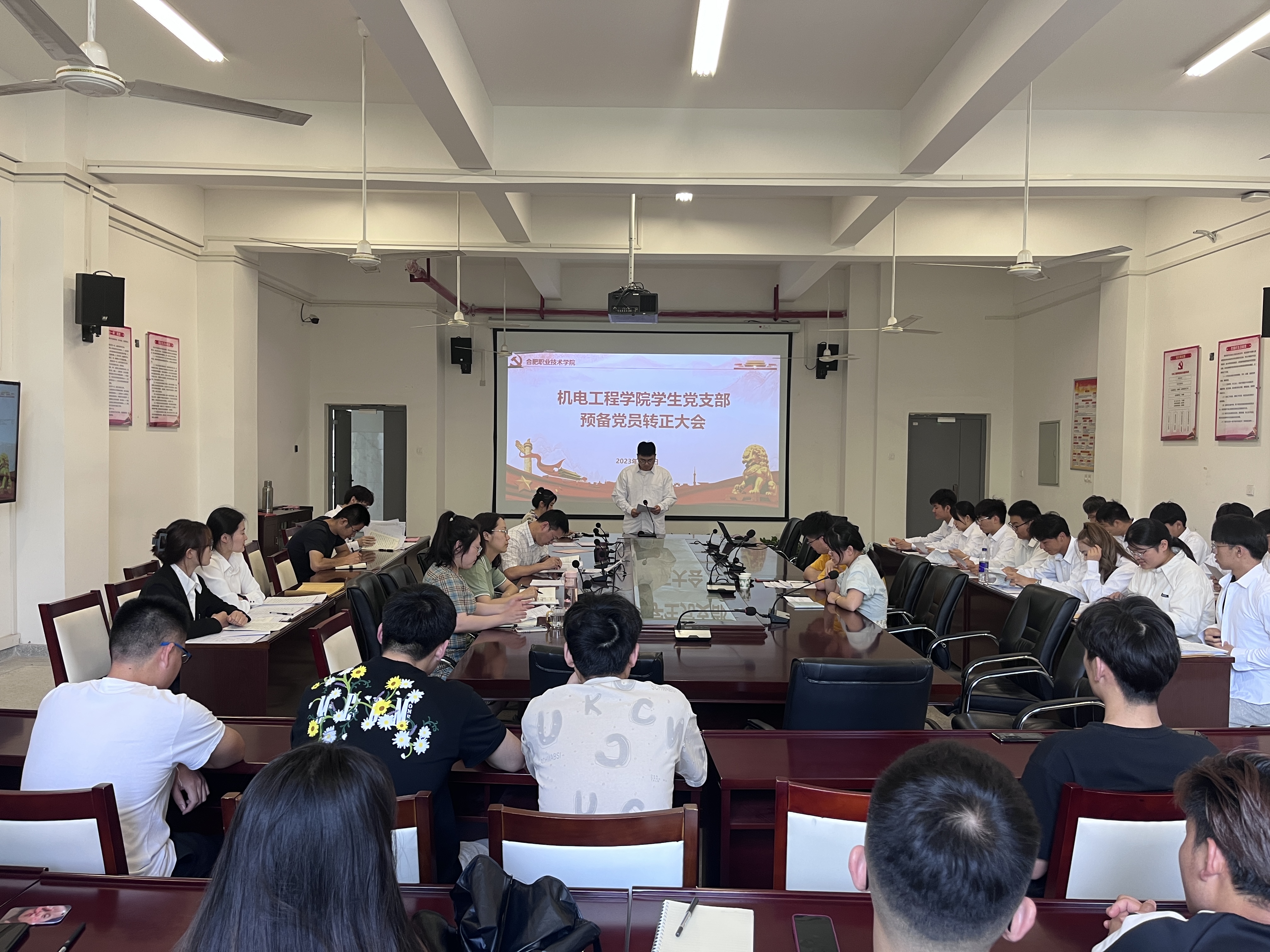 会上,陈金富等20名预备党员依次宣读转正申请,汇报了自己预备期在思想、学习、生活以及工作上的进步和不足,以及今后努力方向以及需要向党组织说明的问题。随后,入党介绍人介绍预备党员在预备期的表现,并对其能否按期转正表明意见;支部书记张开代表支部委员会向支部大会报告预备党员在预备期间的表现审查情况以及是否按期转正的意见;与会党员对预备党员转正问题充分发表意见进行讨论,并表明自己是否同意。最后,经支部大会现场正式党员无记名投票,与会党员全票表决通过,同意20名预备党员按期转正。