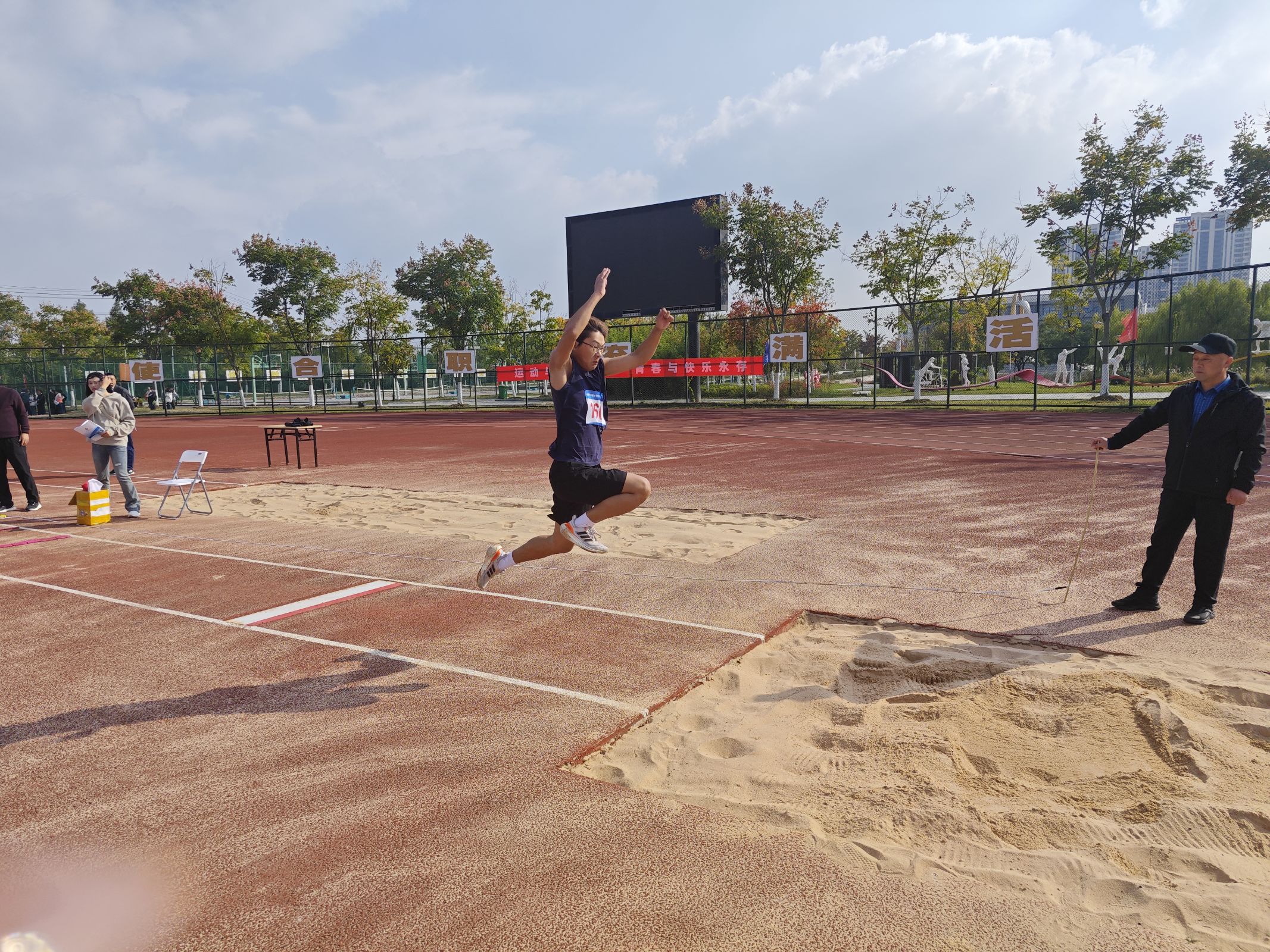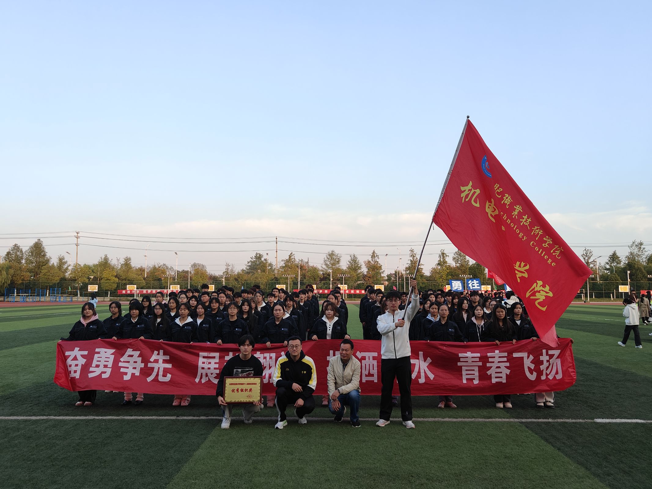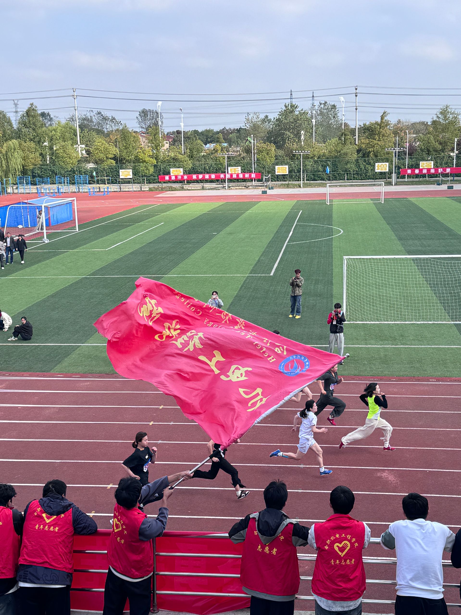 秋风送走酷暑,却压不下运动场上的火热。赛场上学院的运动员们如猎豹般飞驰,似雄鹰般翱翔。他们用汗水书写青春,用拼搏诠释梦想。每一次冲刺,都是对自我的挑战;每一次跨越,都是对极限的突破。他们的身影,是运动场上最靓丽的风景线。赛场之外,志愿者们的辛勤付出,如春雨润物无声,他们的每一个微笑,都是对集体的至诚奉献;班级拉拉队的热情呐喊,如骄阳下的清凉,他们的每一声加油,都是对运动员的鼓舞激励;老师们的关怀备至,如灯塔指引航向,他们的每一次关注,都是对学生的殷切期望。
