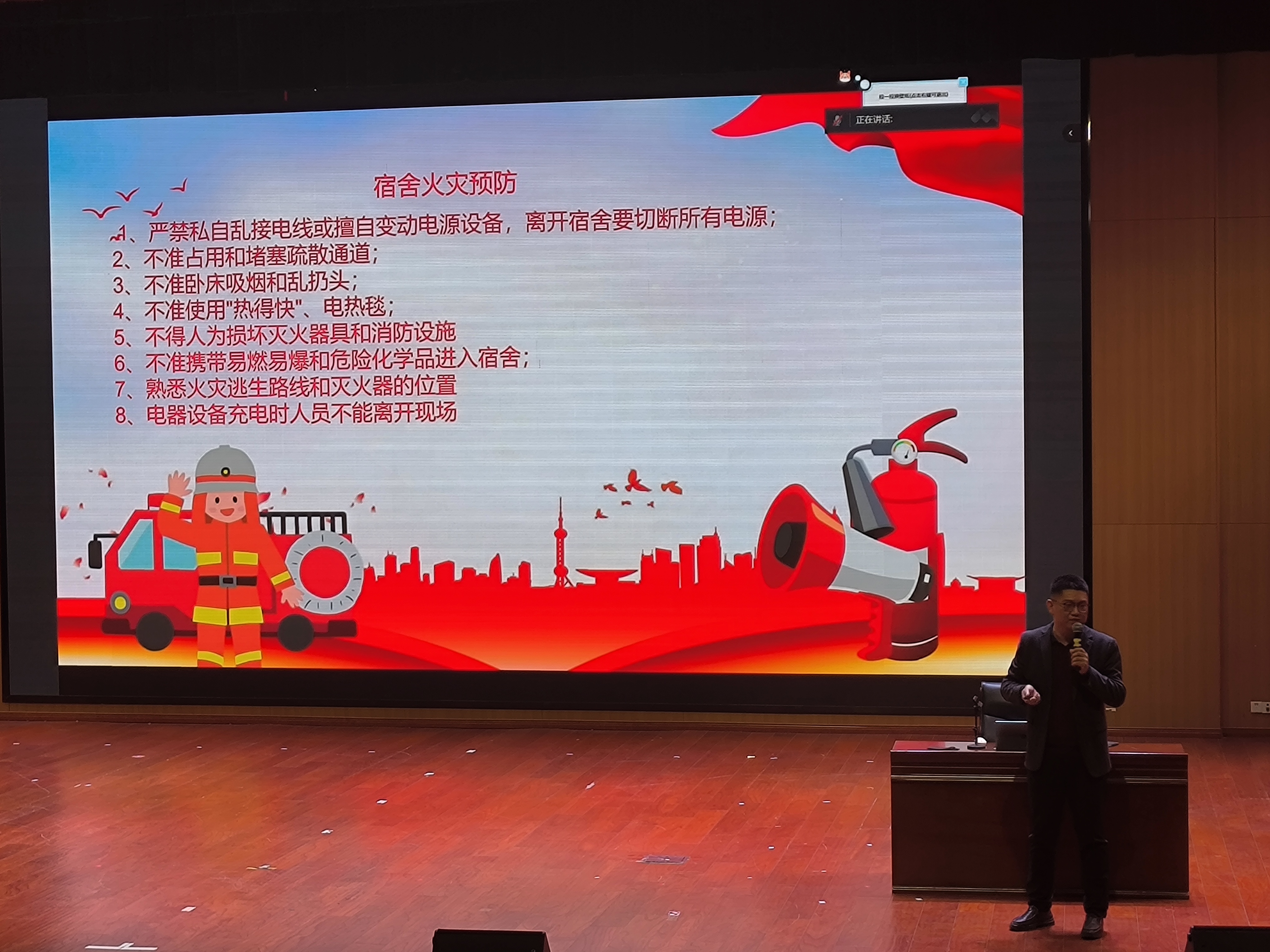 为切实加强学院安全工作,提高学生安全防范意识、安全疏散与自救能力,保障师生生命安全,打造平安校园,在学校保卫处大力支持下,WilliamHill中文官方网站于11月7日下午在大学生活动中心二楼报告厅对24级全体学生开展消防安全知识教育宣讲。本次讲座特邀消防培训讲师唐晨龙工程师担任主讲。校保卫处处长王继强现场指导,该院党总支副书记丁迎春(主持工作)主持。