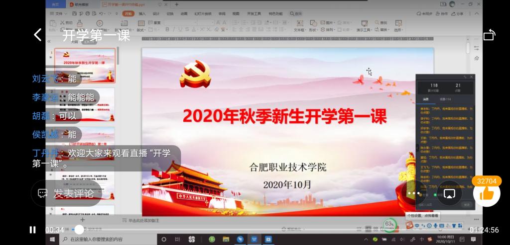 为深入贯彻落实习近平总书记近期以来诸多重要讲话精神,根据中央宣传部、教育部的要求,结合校、院实际,10月11日,利用钉钉直播组织20级全体全日制学生开展了3场“开学第一课”专题宣讲活动。
