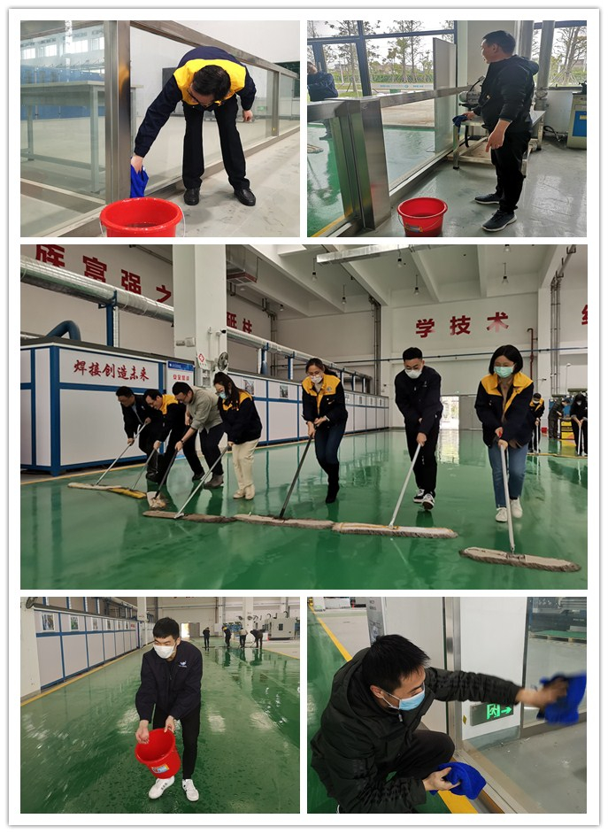 下午,在学院统一号召下,院领导班子带领学院在校教师对机电楼一楼大车间开展了卫生清洁活动。教师们身穿工作服,自带拖把、抹布等工具,化身“最美保洁员”,对车间出入口、地面、实训区、桌椅、门窗、器械设备等区域进行了认真打扫。经过二个多小时的辛苦劳动,在老师们同心协力下的大车间焕然一新。院领导班子表示这样的卫生清扫活动后期还会继续开展,旨在营造一个舒适、安全的环境。这次义务劳动也是WilliamHill中文官方网站党员教师践行“六个一次” 品牌活动 (当一次志愿者、深入一次宿舍、进行一次谈心谈话、做一次有关学生的调查研究、解决一次学生的实习困难、参加一次学生活动)的实际表现,充分体现了党员老师的先锋模范带头作用。