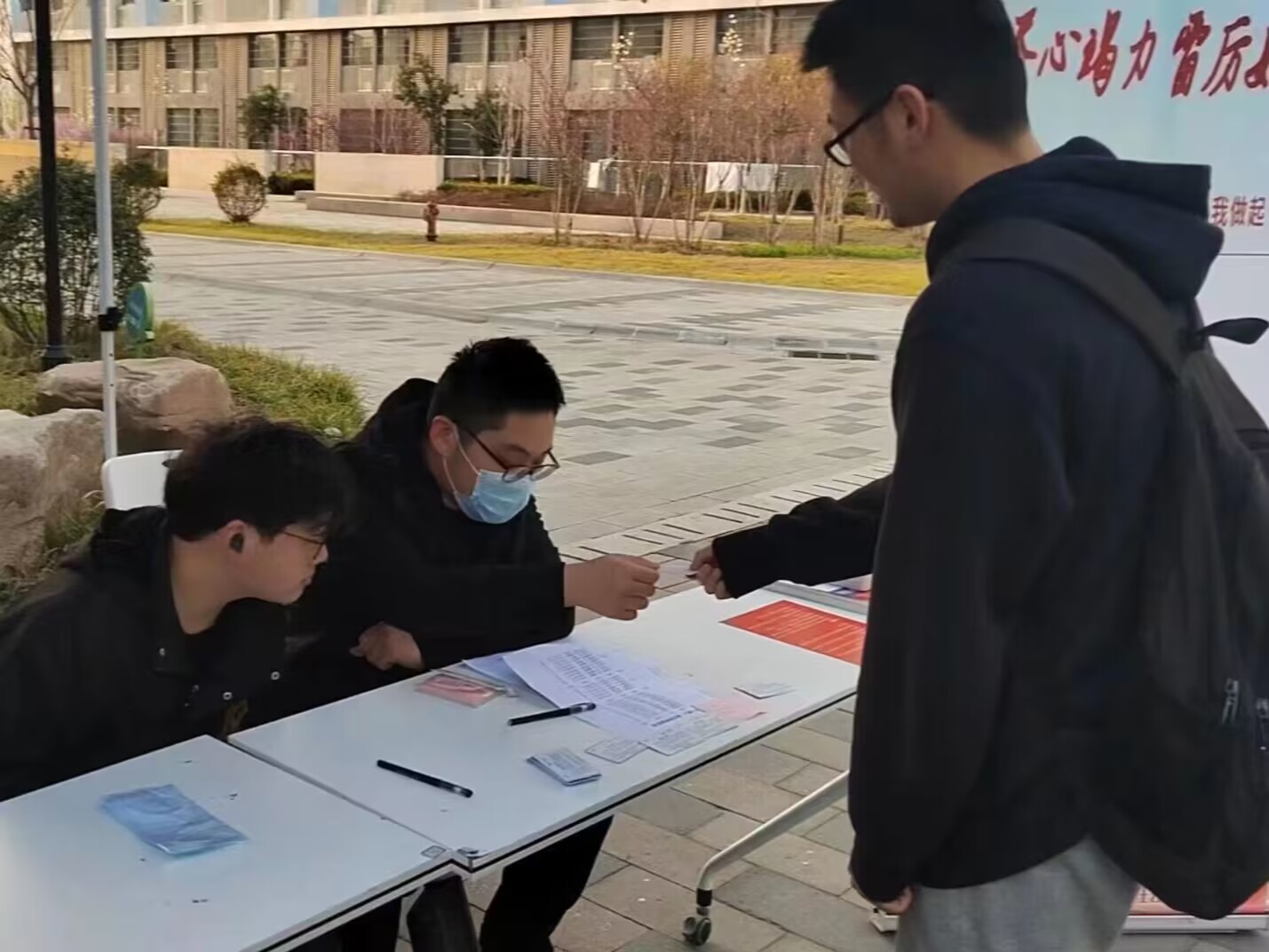 本次活动初衷围绕“同学们常掉饭卡找不回”这一问题应运而生,活动过程中同学们踊跃报名,组织者安排专人值班,现场答疑并做好失物认领及登记工作。志愿者们在收到同学们的物品后细心保留,通过在寝室楼一卡通充值机上查询失主姓名,逐一联系失主并上门归还。
